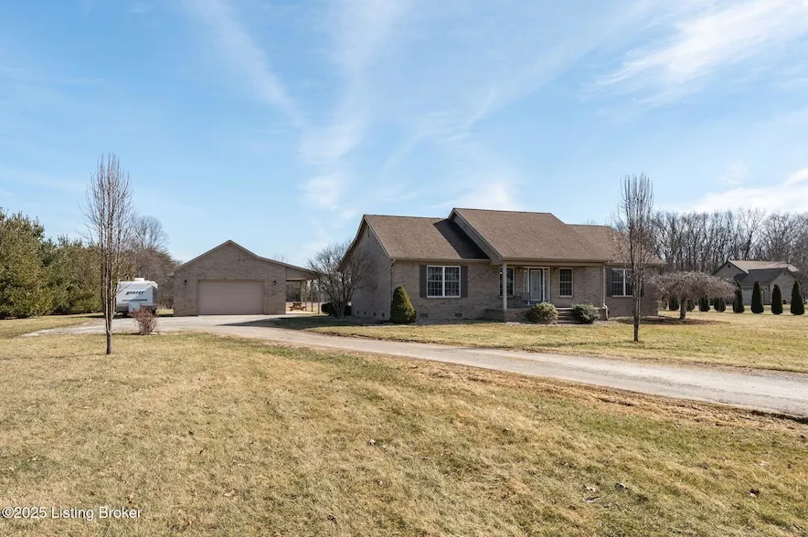 Welcome to 1143 S Moon Road a delightful blend of timeless brick construction and modern upgrades, set on 2 acres of picturesque countryside. This charming 3-bedroom, 2-bath home radiates warmth with neutral paint throughout, gorgeous flooring, and inviting light fixtures that highlight its rustic character. The newly remodeled primary bath adds a touch of luxury. The kitchen has been beautifully updated, featuring new tile flooring (August 2024), a brand-new stove, and a dishwasher (November 2024), making it both stylish and functional. Enjoy cozy evenings by the electric fireplace, or step outside to relax by the above-ground pool, complete with a generous wrap-around deck and lush landscaping. The detached 27x32 garage, featuring a covered lean-to, electric, dedicated HVAC, and shelving, offers ample space for hobbies, storage, or a workshop setup. For added convenience and efficiency, the home is equipped with a whole-house water filtration system, ensuring clean, high-quality water throughout. Additionally, the water heater was replaced in 2022 and includes an expansion tank for reliable hot water supply. Embrace country living with modern comforts 1143 S Moon Road is ready to welcome you home.