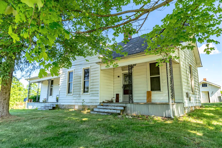 Situated on 2 acres, this old farm house has large rooms and an expanded Kitchen The trim work and doors make this an exceptional find! Original tile around fireplace, 12 ft ceilings, some replacement windows. 2 Bedroom and 2 full baths. HVAC 10 years old, new septic, new roof and approximately 10x16 building. Large covered front porch. An easy drive to Shelbyville or Frankfort. Financing would be difficult for government type loans.