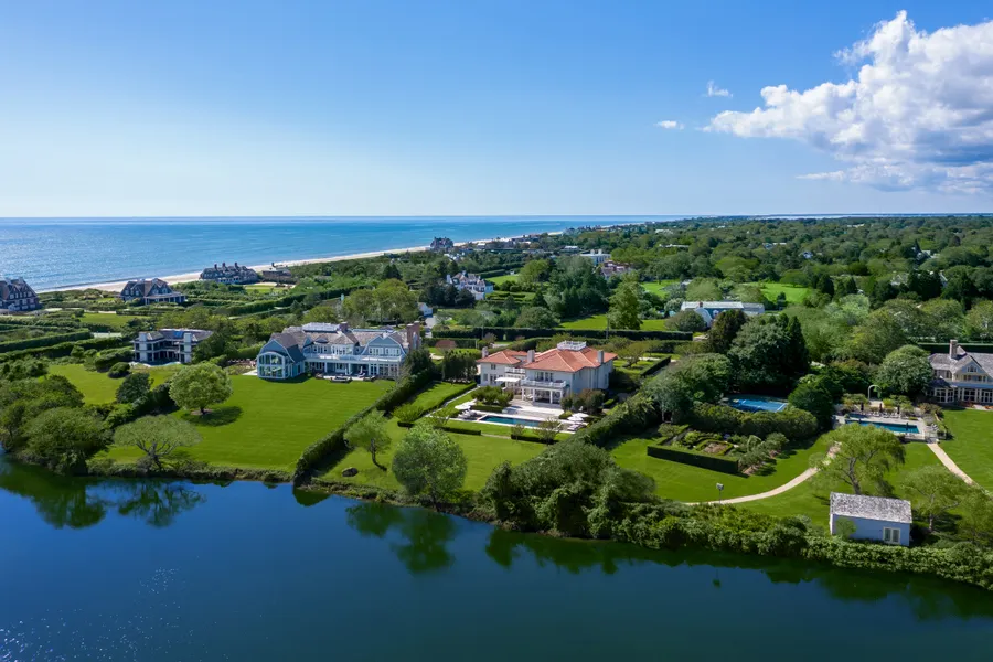 Among the very finest Southampton Village residences, and quick walk to the ocean with 120 +/- ft waterfront on Old Town Pond, this Wyandanch Lane property is now available as a summer rental. Redecorated and displaying the most discerning taste and style, this magnificent residence is beautifully furnished. From the entry and center hall, the main floor also features a study and formal dining room. The luxurious drawing room, over-sized dine-in kitchen and formal living room, each with fireplace, open onto the rear pond-facing patios and decks. A ground floor junior master bedroom suite with soaking tub and private deck, plus an additional guest suite with sitting room round out the main floor. Upstairs, three en suite bedrooms and the master bedroom suite with its fireplace, double baths, dressing areas, and spacious deck all open off the broad landing. A separate guest wing includes two more bedrooms and a bath. The finished lower level features a game room, theater, massage room, gym with separate steam room, sauna, half-bath, and large laundry facility. Outside, the two +/--acre property is exquisitely landscaped includes a 15'x50' heated Gunite pool. A rooftop deck has been added that offers endless views of the ocean. The property is fully-upgraded with modern mechanicals, indoor sound system, telecommunications, WiFi & Internet, and power generator. The garage accommodates three vehicles.