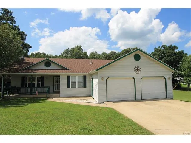 Country living near the back gate of Fort Leonard Wood. This 3 bedroom, 2 full bathroom home features a STUNNING rock wood burning fireplace, matching appliances in the kitchen, a breakfast bar, tons of counter top and cabinet space, carpet in the living room and bedrooms for comfort that is less than 1 year old, a 2 stall garage with epoxy floor and a work bench that is included in the sale, and much more. The outside is absolutely WONDERFUL! The home sits on a level lot with mature trees and backs up to a cleaned up wooded area with a fire pit, a covered front porch, a nicely sized deck off the back, 2 sheds for storage on is 16x10 with a loft, and a large carport. You need to see this home for yourself!! Call to schedule a showing today!