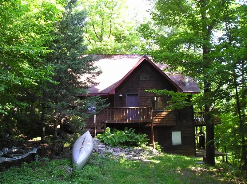 Peaceful 4 season privacy on nearly 2 acres. Private road with 240 feet of sheltered bay frontage on Hemlock Lake and Red Cedar chain. 2400+ acres of great boating and excellent fishing. Enjoy family and friends with open concept living space, 4 BR, 1.5 baths and extra outdoor shower. Cathedral ceilings and natural light in chalet style home with 3 decks plus large screened porch . Walkout lower with large rec room and work room. ATV access from house. Extensive summer and winter fishing. Easy 2 hours and 15 minute drive from MSP.