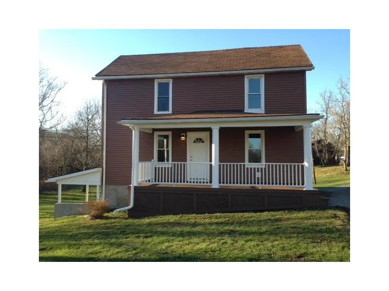 A Home Warranty is included with this totally renovated 4 bedroom farmhouse situated on approximately 1.8 acres with barn included. The everything new interior has a beautiful kitchen, Dining room, Family room and living room and offers a half bath and laundry on the first floor. Done in neutral colors the new hardwood laminate stands out! The second floor has 4 bedrooms an all new full bath and a secondary staircase that lead back to the first floor laundry family room and kitchen. New plumbing, updated electric and New central air. This rolling property has a barn, two driveways and a ground level covered side entrance to the basement.