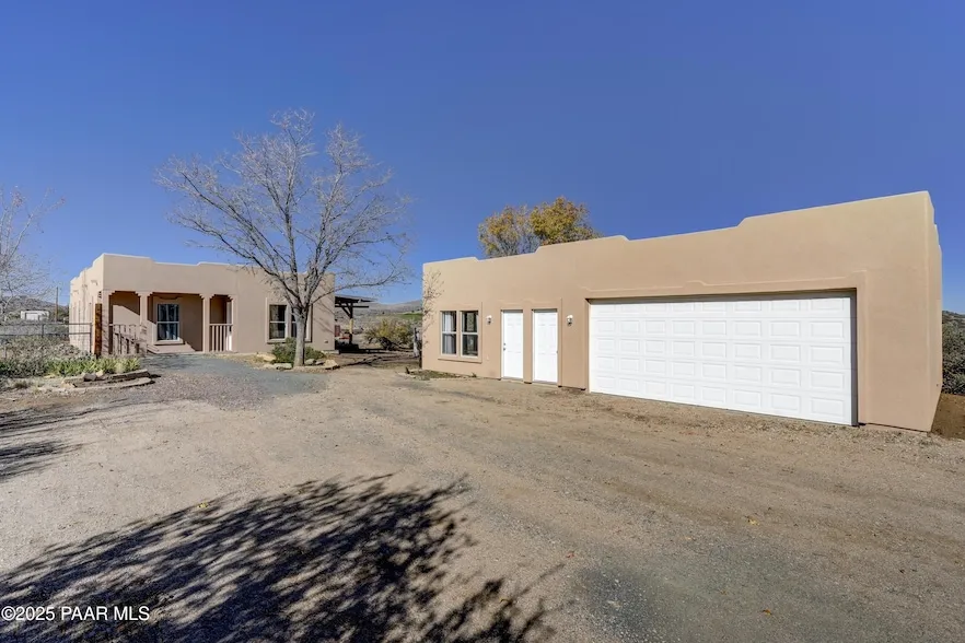 WOW Incredible Views, 2 car garage plus additional living space of 448 Sq. ft heated and cooled off the garage with stained concrete floors perfect for that shop or man cave! Real Hardwood floors in the main house, all newer cabinets. All new flooring and recently painted inside and outside. Wood burning stove great to lower those heating bills. Home was recently re-stuccoed. Great producing well and centrally located truly a rare find. NO HOA RV Parking and and oversized 28X27 2 car garage. Also don't miss the fenced Dog run area on the side.