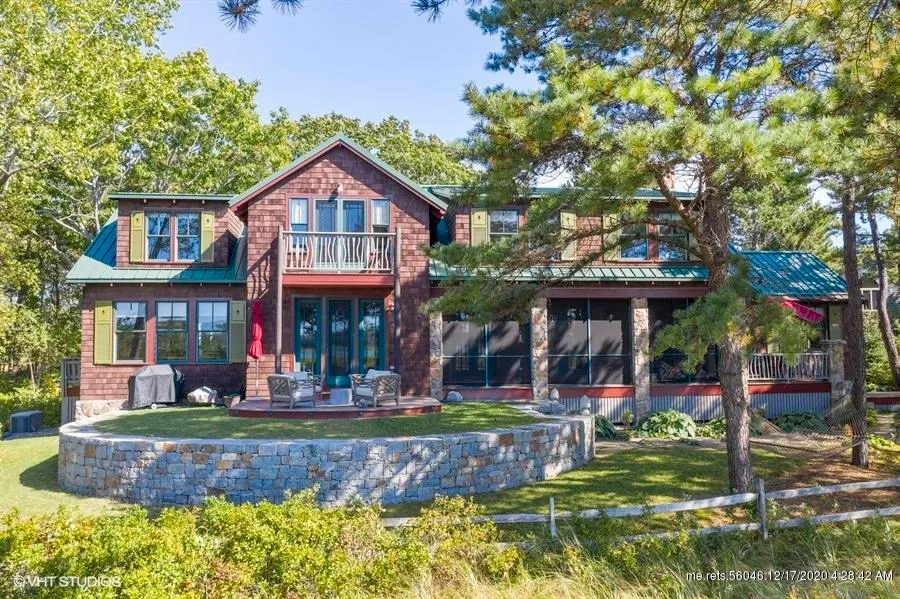 This Adirondack styled home is nestled amongst pine trees on 2 acres abutting the Rachel Carson Reserve. Views of the Atlantic Ocean and the Batson River can be seen out of nearly every window. Your private path to the soft sands of Goose Rocks Beach is directly across the street. Meticulously renovated, this property leaves no stone un-turned. The property grounds are park-like offering formal and natural spaces. Exterior amenities include an impressive stone wall at the driveway entrance, curved retaining walls creating an elevated deck to take in the stunning ocean and marsh views, fire pit, gazebo, exterior lighting/irrigation, outdoor shower and screened in porch. All the amenities one would want are inside this home- a two story field stone fireplace, radiant floors, Viking double ovens, range and dishwasher plus a Sub Zero refrigerator/freezer, Butler's pantry, central air, Viessm...