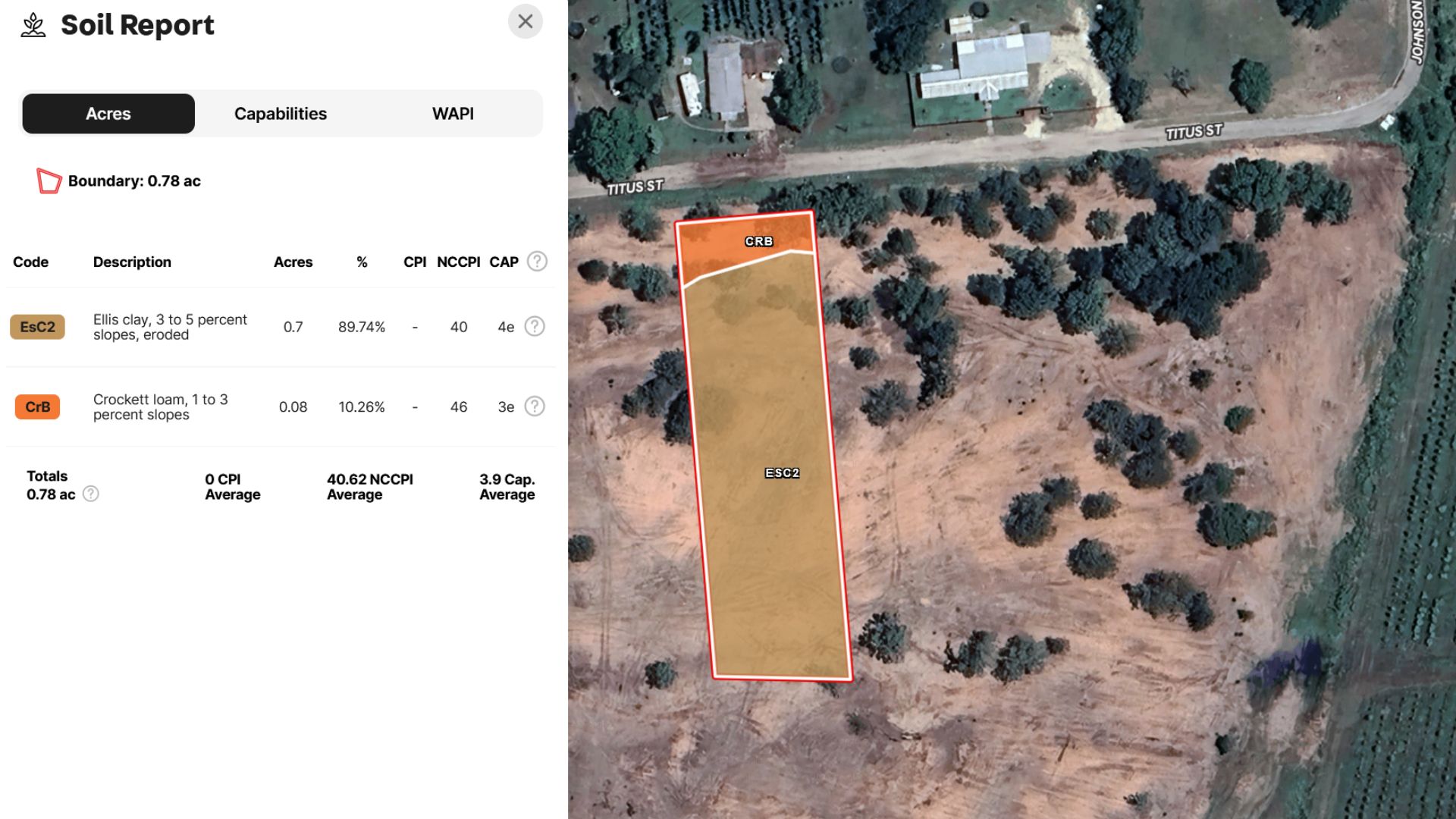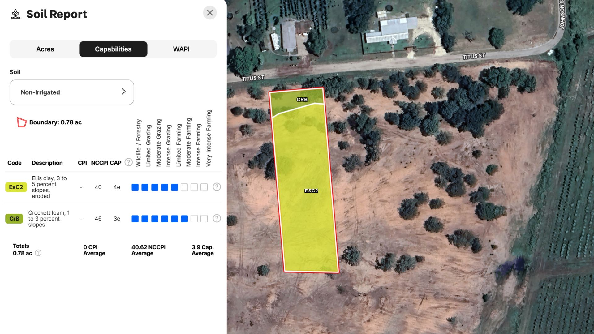 Search for detailed parcel information including; Elevation & Vegetation Maps, Ownership Information, Detailed Parcel Information, Crop History Map, Soil Survey Productivity Data, and more.
