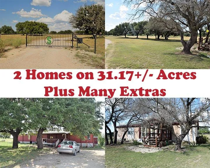 This is a unique property that features two homes, two metal barns, four storage building and a hay barn on 31.231+/- acres.