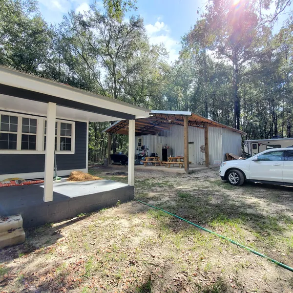 price reduced!!! 2 houses on 5 acres. The main home is 758 square feet. The main home has 2 bedrooms and 1 1/2 baths. There is also a loft area that can be used for more sleeping areas or an office. The 2nd structure has an open living area with sleeping quarters. There is a full bathroom with a laundry room. It also has an outdoor kitchen with 2 grills that are staying with the property. The 5 acres is perimeter fenced. There is also a firepit and an additional shed for storage with electric and sleeping quarters.