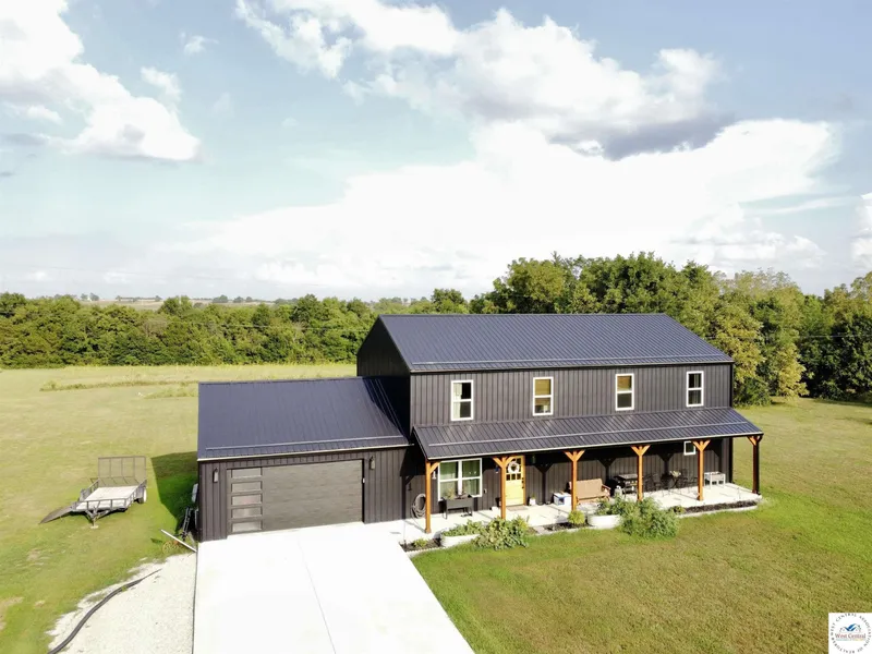 This 5 Bedroom and 3-1/2 Bath Custom Built Modern Farmhouse is truly one of a kind! Set in a very quiet neighborhood this home sits on 5.7 +/- acres overlooking the private lake. This 5 BR, 3-1/2 BA home has so many custom upgrades throughout and has the kitchen that you have been dreaming about! Custom white oak cabinets and granite countertops with a large island for cooking and large pantry The master bedroom is on the main level with double closets and tiled walk-in shower. Four additional bedrooms and two jack and jill bathrooms upstairs along with a spacious family room loft. The home has spray foam insulation in the walls and roof. 2 central air and heat units one for the main level and one for upstairs. Metal siding and metal roof with cedar accents outside make for low maintenance. The covered front porch offers lots of room to enjoy the great view. Attached 2 car garage w...