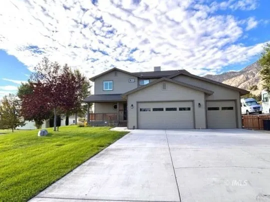 Perched atop Sierra Grande, this spacious 4-bedroom, 2.5-bath home showcases sweeping views of the Owens Valley and White Mountain Range from nearly every window. The covered front porch and oversized 3-car garage welcome you inside. Downstairs features 3 bedrooms, a full bathroom with a custom tile enclosure and travertine floors, plus a versatile family bonus room. The laundry room offers excellent storage, a folding counter, and a sink for convenience. Upstairs, vaulted ceilings open to an expansive great room filled with natural light. The kitchen is equipped with quartz countertops, a farmhouse sink, and plantation shutters throughout. The primary suite includes a large walk-in closet, garden tub, stall shower, and access to the back deck. The deck overlooks the 1-acre yard, where the sellers recently added concrete pathways and fencing for functionality and dog run. Fruit trees-app...
