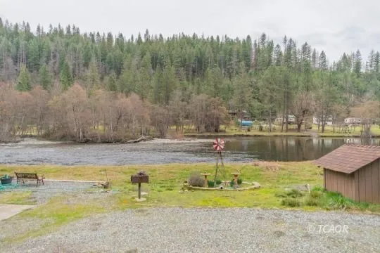 Calling all anglers! Rare opportunity to own prime riverfront property on the Trinity River, where you can launch from your own property and fish for steelhead right out your front door. This 2,200 sq. ft., 3-BD, 2.5-bath home sits on 1.26 acres and was built in 1986. Designed to capture the river views, you'll enjoy stunning water vistas from the living room, dining room, and primary suite, with sliding glass doors opening to wraparound covered decking - perfect for relaxing after a full day on the river. The main level features luxury vinyl laminate flooring throughout the living room, dining area, and primary en-suite. The kitchen offers tile countertops and easy access to the main living spaces, making it ideal for hosting fishing buddies and family gatherings. The primary suite is conveniently located on the main level, while two guest bedrooms and a full bathroom are upstairs, offering privacy for visitors. Outside, you'll find a charming she-shed with a loft, great for extended guests, extra storage, or even a bunkhouse setup. A detached four-car garage provides ample room for boats, drift rigs, gear, and all your outdoor toys. If you've been searching for true riverfront living
