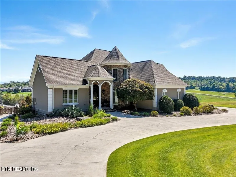 Discover your private sanctuary on 10 rolling acres with breathtaking views of Kahiti Golf Course and distant mountain vistas. This stunning home combines modern elegance with practical luxury, featuring beautiful stucco and stone exterior craftsmanship that catches the eye from every angle.