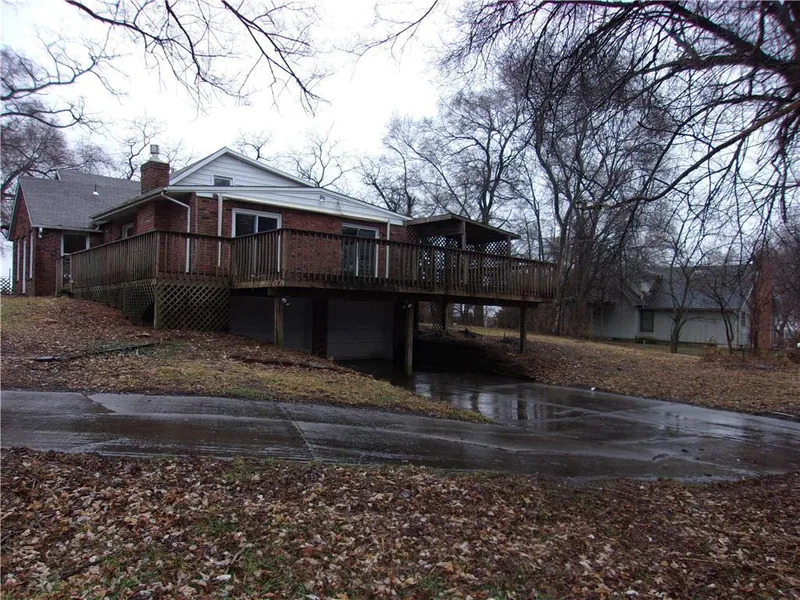 Rustic all brick home on 2.2 acres in Blue Valley school district! Spacious home boasts 2300 sqft in park like setting. This remarkable home has 3 bedrooms, 2.1 baths, w/lots of wood floors. Living rm has brick hearth fireplace,walk out to deck overlooking private nature reserve.Lots of counter space in large kitchen.Updated master bath. Bedrooms enjoy views of nature. Home needs TLC, selling 'as is'. Walk cautiously on deck, some boards damaged. Prime location, growth area!
