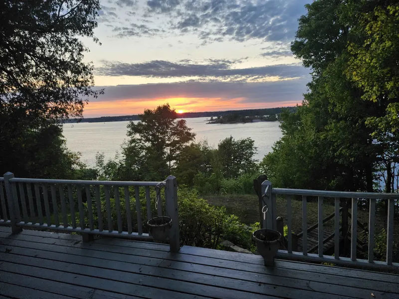 Experience the perfect blend of riverfront elegance and artistic charm in this stunning contemporary home overlooking the Saint Lawrence River. Built in 1990 and thoughtfully updated, this property offers panoramic water views, a private tram that carries you down the hillside to a deep-water dock, and a shoreline ideal for swimming and boating. View the 3D Tour with this link Inside, the home welcomes you with a sunlit living room featuring hardwood floors, beamed ceilings, and dramatic floor-to-ceiling windows that frame the river. The kitchen is spacious and functional, offering ample cabinetry, generous counter space, and a built-in dining area that makes entertaining effortless. Upstairs, the primary and second bedrooms both enjoy breathtaking views, separated by a cozy reading and napping nook. The large bathroom includes a jetted corner tub, a separate shower, and a vanity with a...