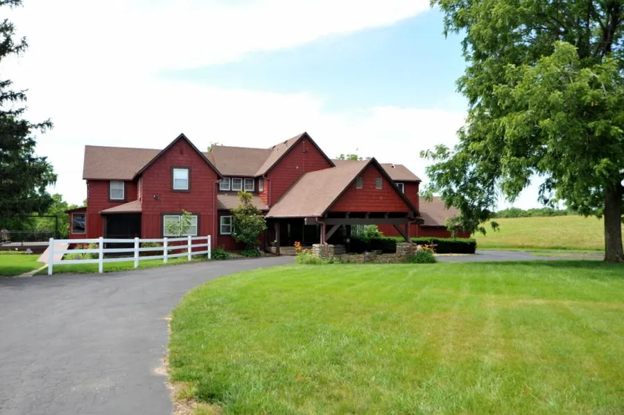 Wet bar has refrigerator & ice maker, sink. 2nd Story catwalk. 6th bedroom too! Attached & detached garages. Large dry, unfinished basement, entrance in home and to outside. Acres part wood, part pasture. Mature trees, quiet, private. Privacy & nature prevails here! Huge outbuilding (100x100) with finished office & bathroom, heat,A/C its own septic system,water, electrical,2 story,concrete flo...
