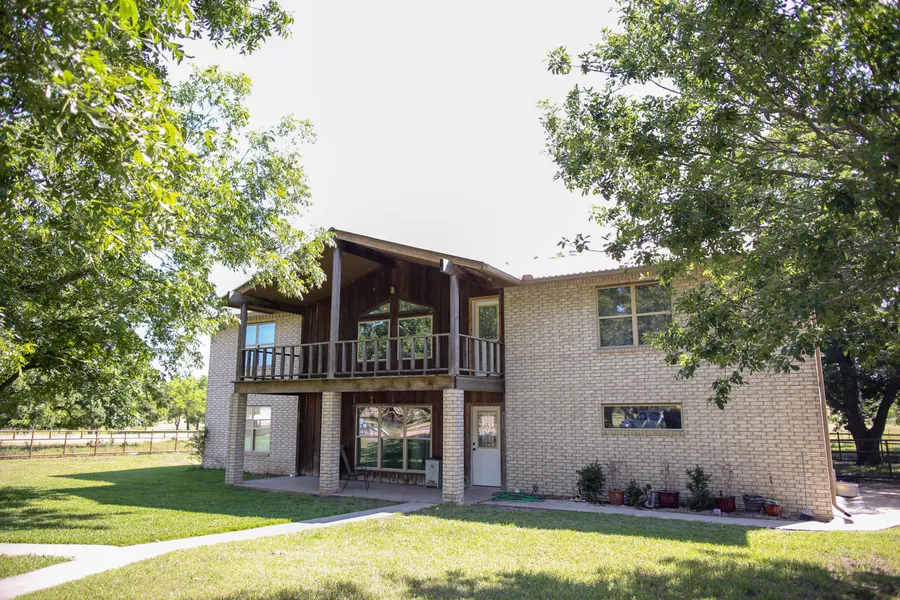 You access the property off paved FM road. There is a circle drive in front which leads you straight up to the house, and then curves you around through all the oak trees on your way out. You will often find deer bedded down in this area. Out front you are greeted by an in-ground pool, perfect for cooling off on a hot summer day. The pool has a hot tub for relaxing and also a slide for some fun and entertainment with family & friends. Inside the home, your eye is drawn to the floor to ceiling brick fireplace as well as the spiral staircase leading you upstairs. The living room is open to the kitchen & dining, where you will spend your time gathered around the table or the beautiful island. The kitchen has beautiful dark cabinets, and new stainless steel appliances. Down the hallway, you will find the half bath, a large flex room that could be used as a playroom, workout room and more. At the end of the hall is the utility room, where there is plenty of space to do your washing, drying, folding, hanging...all of it as well as an additional storage area perfect for your extra refrigerator, deep freeze, and household items you buy in bulk. The opposite direction from the main area of the home is the Master Bedroom, bath & walk - through closet. The bathroom has a large vanity area with vessel sinks, a built in storage area, a private toilet room, and a massive walk in shower. The closet can be accessed from both the bedroom and bathroom, making this a dream for couples! Upstairs, you will find a nice hangout room, currently housing the pool table. This area has access to the large front balcony, overlooking the yard, beautiful trees and the pool. The first bedroom is very large with plenty of room for a king size bedroom set. Next down the hall is 1 of the 2 bathrooms upstairs. This bathroom has tons of storage, a very large vanity, as well as a big tile shower. The set of french doors leads to the office, and there is also a door leading out to the back balcony. The second bathroom also has a large vanity area and is very spacious. This one has a tub/shower combo. At the end are 2 very good sized bedrooms, perfect for kids.