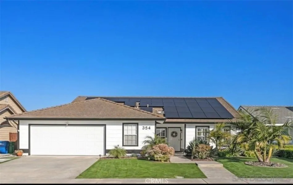 Talk about a dream home!! Single story 4 bedroom 2 bathroom home in Oceanside. This wonderful home has been meticulously taken care of and shows like a model home. You will immediately notice the beautiful curb appeal with tropical, low maintenance landscape. The interior is just as beautiful with an open floor plan, natural light, vaulted ceilings and beautiful laminate flooring. The kitchen has a large island with white quartz counter tops, modern lighting, stainless steel appliances and white cabinets. The bedrooms are all generously sized with newer carpet. The backyard is perfectly designed for entertaining. Eastern Views of the Mountains! In the winter you can even see the snow on Big Bear Mtn. Newer aluminum covered patio was installed to have the indoor/outdoor feeling right off the family room. Enjoy entertaining guests here or just relaxing in the privacy of your own backyard. The home also boast PAID OFF SOLAR!! Newer AC unit and furnace, plantation shutters, and newer copper plumbing throughout home. The two car garage is oversized with lots of options for an extra room or space. There is no spared expense here, just lots of meticulous care and attention to detail! Great Location, the San Luis Rey trail that takes you directly to beach is very close, walking distance to shops, and easy access to freeways! 8 miles to the beach!! You will not be disappointed with this gem of a home. Sewer: Sewer Connected