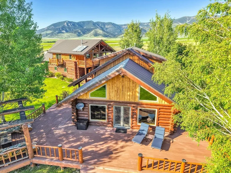 Horse property! Where rural Montana charm meets elegance! Gorgeous custom log home with 360 degree mountain views; Spanish Peaks, Tobacco Roots, Horseshoe Hills, & the Bridger Range. Open floor plan concept of living, dining room, & kitchen open to a large wrap around deck & entertaining area. 4 bd, 2.5 ba, main level primary suite, laundry room, & office. Claw foot tub/ tiled showers. Oversized 2 car garage with a studio guest house with full bath & kitchenette/wet bar that utilizes solar panels. The 20 acres is fenced & crossed fenced with steel. Barn, tack room, & dog kennels. 90 x 140 riding arena done in steel. 52 x 65 maintenance free shop with steel siding & a steel roof, insulated & heated. There is an art studio, gym, loft storage, & plenty of room for vehicles & toys. Cabin with outdoor cooking, sitting room, & fire pit for all of your outdoor entertaining. Beautifully manicured yard with beautiful mature trees & greenhouse. 16 mi from Bozeman Yellowstone Int. Airport.