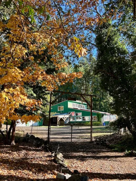 Private Forest Retreat for Nature Lovers & Homesteaders. Tucked away on 20 peaceful acres of towering evergreens, moss-covered outcroppings, and sunlit meadows, this property offers privacy, beauty, and sustainability. Enjoy starry nights from the dock on your own 1-acre spring-fed pond or watch wildlife roam the landscape. The home is filled with light from vaulted ceilings and natural wood accents. The main level featuresa cozy woodstove in the living room, while the upstairs loft/family room includes built-in bookshelves. There are 2 bedrooms, 2 bathrooms, and 2 versatile bonus rooms ideal for guests, hobbies, or a home office. Off the living room, a 928 sq ft solarium offers year-round growing with a waterfall and planting beds. There is also a 28x96 greenhouse with lighting and irrigation. Gated, with deer fencing, gardens and fruit trees. Peaceful, private, and ready for your homestead vision.