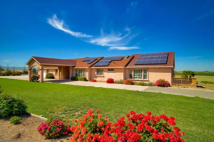 View the Virtual Tour here! https://my.matterport.com/show/?m=xqEcmtg9dKr Don't miss this incredibly peaceful custom estate on ~20 acres of usable land with unbeatable views. The perfect mix of function and beauty, this 3,304 square foot house also has a guest house, and two shops, both wired with 220V. Main house has an open floor plan with 4 bedrooms, 3 bathrooms and boasts hardwood maple floors, granite counters, leased solar, and an enormous master bedroom with ensuite bathroom and walk in closet. Guest house is 1 bed / 1 bath, ~400 square feet, with its own kitchen, living room, and laundry hook ups. Relax in the evenings in the huge enclosed patio, with a view of the land. This property has water rights to the San Luis water district, and you can fish in the canal that runs past the back of the property. There is plenty of room to park multiple vehicles, and the driveway concrete is 8" thick to support heavy equipment. This property is suitable for agriculture or livestock.