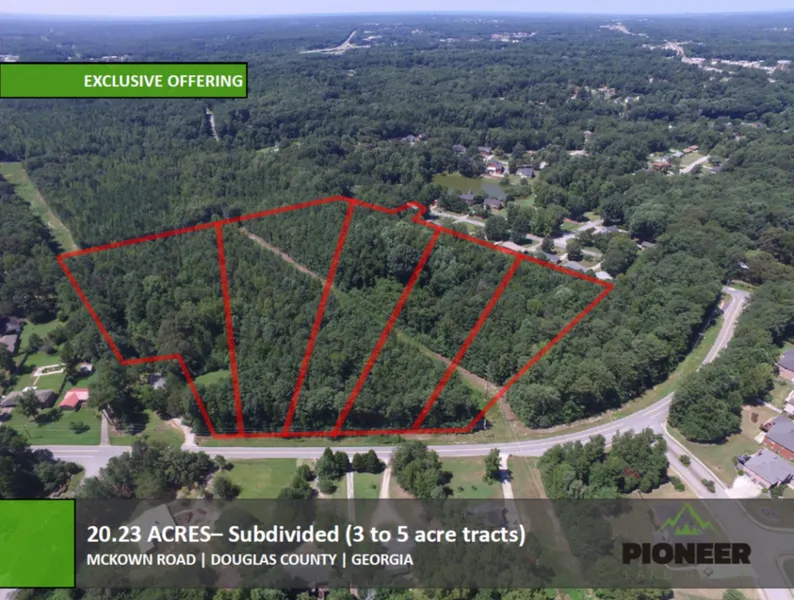 The McKown Estates are currently zoned Residential- Low Density and offer a property class of R4-Residential on McKown Road in Douglas County, GA. The total acreage for sale is 20.23 acres. The land has been subdivided into the following parcels: Tract A is 5.14 acres, Tract B is 5.06 Acres, Tract C is 4.03 Acres, and Tract's D and E are 3 acres in size.