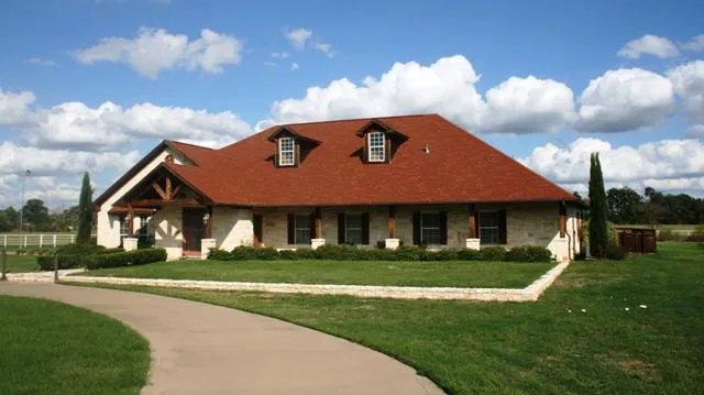 IMPRESSIVE COUNTRY ESTATE. This approximately 4281 square foot home is truly breathtaking and has a rustic yet modern Texas Hill Country/lodge-like design. This historic looking home has instant drive-up appeal with its handsome rock exterior complimented by pipe fencing, gated entry, circular drive, and extra parking areas. Special features in the home include four bedrooms, three and one-half baths, 2 car garage and 3 car carport, extensive tile and hardwood flooring, corian countertops, tile backsplash, double fireplace, cathedral ceilings with wood beam treatments, stainless appliances, emergency power generators, security camera system, and much much more. The impressive outside amenities include 20 plus acres of scenic countryside, stocked lake, refreshing pool with waterfall, extensive hardscapes, hot tub, and covered porch areas. There were no corners cut in constructing this re...