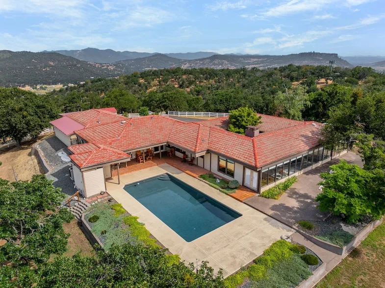 Mid-century modern elegance perched atop 20.36 private acres with breathtaking mountain and valley views!This stunning 4-bedroom,4-bath home features clean architectural lines,a unique indoor atrium that brings the outdoors in. The spacious kitchen has upgraded Thermador appliances and a view of the patio and pool so you don't miss the fun while cooking! The open living area is perfect for entertaining, flowing seamlessly to an incredible outdoor space with an inground pool, outdoor kitchen and spacious patio-deck. The luxurious primary suite offers a jetted tub, walk-in stone shower, dual vanities and a generous walk-in closet. The 1424 SqFt, 3 car finished garage with 3 phase power and added separate storage space will meet all your storage and car needs. With abundant RV parking and ultimate privacy, this one-of-a-kind property blends sophistication,comfort and natural beauty-your own mountain-top retreat awaits!