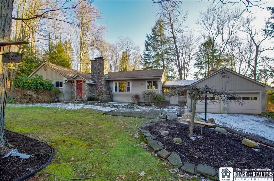 Spacious ranch style home set on over 20 acres in the Southwestern School District. The generous floor plan offers multiple options to suit your needs. Four large bedrooms(including master suite) and a bonus room can be configured to meet your lifestyle. Whether you need all the rooms for bedrooms, or an office, playroom, den, gym, or hobby room, the space is available. Hardwood floors are found throughout all the living areas on the main level. With some light sanding and fresh stain they would make a stunning focal element to the home. The large living room has open beam ceilings and a central fireplace. The kitchen and dining area works well as-is but also has a great layout to convert to your dream kitchen. Each bedroom is generous in size and some include built-ins and over size cedar closets. The lower level is partially finished and includes a dry bar and stone fireplace. Additional storage and laundry area along complete the lower level. Step outdoors and enjoy over 20 acres of freedom. There is a small barn with concrete floor and storage shed on the property. Trails to explore, yard to play on and game to hunt! With some updates this home can be spectacular!