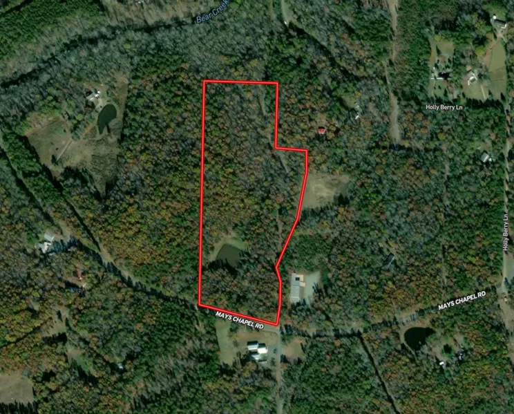 Discover an exceptional estate opportunity in the Bear Creek community of Chatham County, NC. This offering includes approximately 20 acres, carved out from a 45-acre tract. The property boasts over 560 feet of paved frontage on Mays Chapel Road, along with around 1,500 feet of shared gravel drive access. Predominantly wooded, the parcel features a mix of mature hardwoods and softwoods, and includes a picturesque one-acre pond.