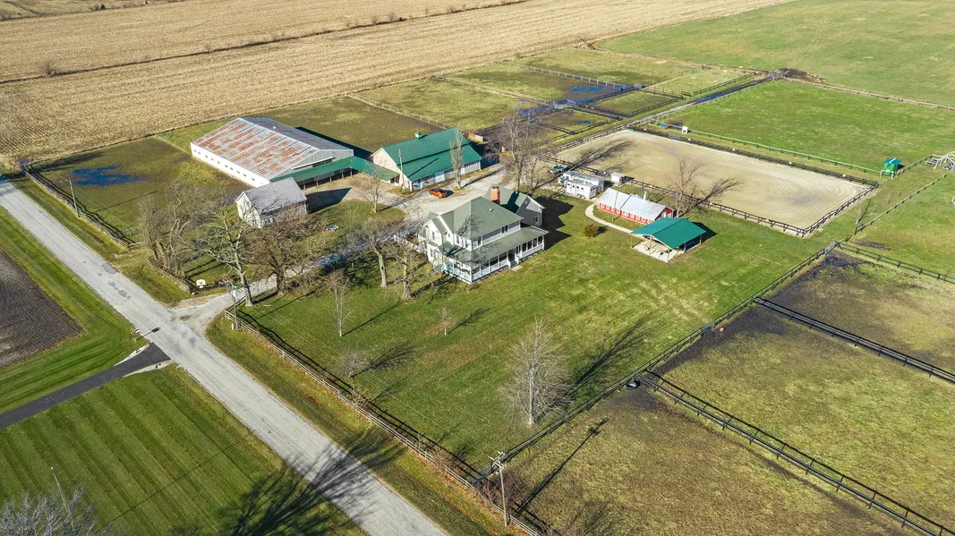 20 ACRE HORSE FARM; FARMHOUSE; 20 STALLS; INDOOR & OUTDOOR ARENAS; MACHINE SHED and STORAGE BARN/SHOW OFFICE. Built in 2002, this 2-Story home is stylish of a late 1800s American 4-Square...but with so much more! FACTS: 2,560 Square Feet, 4 BR, 3.5 BA, 9 Ft Ceilings, Wide, wrap-around, covered deck with dining area. FEATURES: Hardwood Floors, intricate Crown Molding, 6-panel Wood Doors; abundance of Large Windows for natural light. CONVENIENCES: 1st Floor Bedroom and Bathroom; 2nd laundry hookup is possible in back coat closet. ORIGINAL FARMHOUSE ITEMS include the back door that goes to the deck and the sink in the back entry. BASEMENT has great potential for Related Living / In-Law Suite, as the ceilings are extra tall, there is a fireplace, laundry hook-up and roughed-in plumbing for a full bath. TWO-CAR GARAGE is tall and deep, drywalled and features finished attic space above. RECENT...
