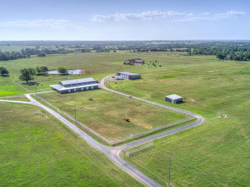 20 +/- Gorgeous Acres with Unmatched Seclusion between OKC and Tulsa about 7 miles North of the Chandler exit. The Exquisite 3,675 sf Custom Luxury Home is perched atop the crest of the hill on a private asphalt drive, overlooking the fully stocked pond. You have to see the quality and the thought that went into this place, you can tell it was built by a skilled carpenter. It has the perfect open floor plan with amazing outbuildings. The finished-out garage and oversized patio is perfect for family gatherings. The garage can be heated and cooled and is perfect for large parties, playing pool, watching a football game or whatever your family desires! Tons of room to spread out, fish, cook out and play outdoor games with family!