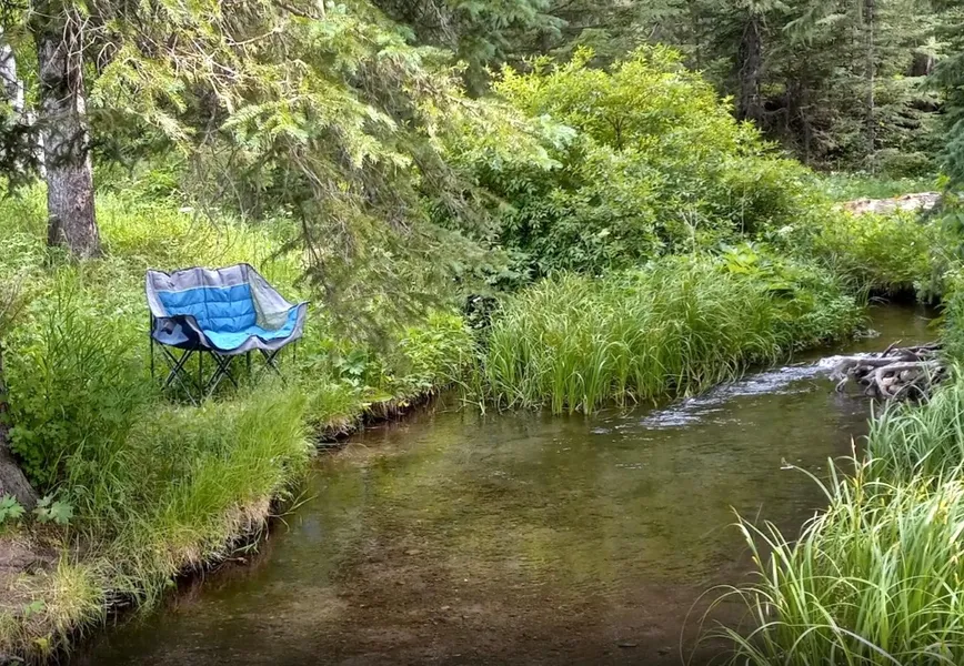 Camp by the creek on the claim or the nearby Beaver Creek Campground.