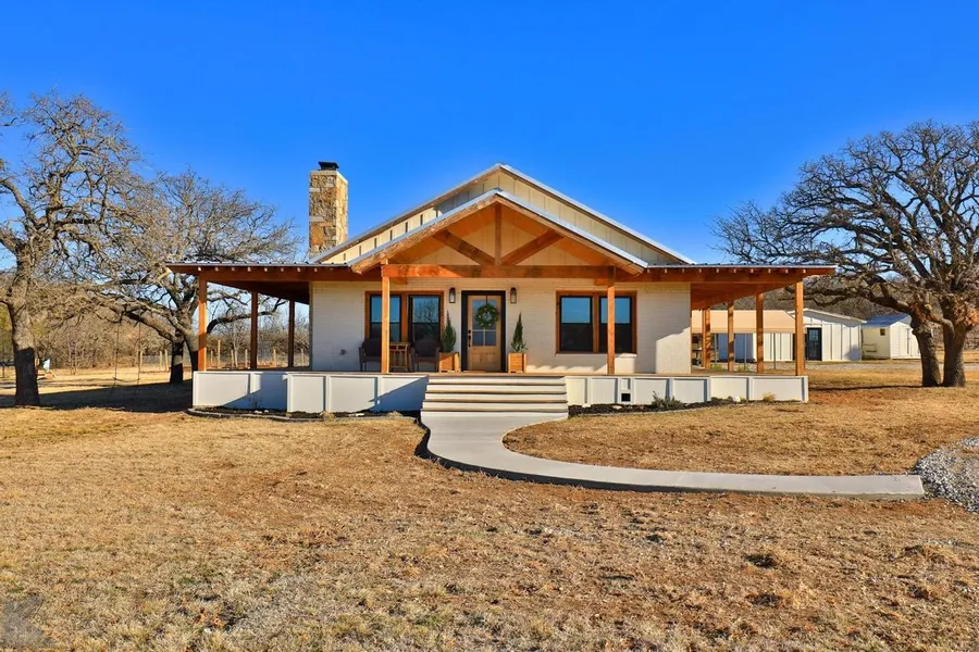 Immaculate farmhouse style home on 20 acres just outside of town! So much character! Original, exposed shiplap throughout. Home boasts beautiful quartz countertops throughout, a wood burning fireplace, original hardwood floors, a farmhouse sink and new fingerprint resistant black stainless steel appliances. Watch the Texas sunrises and sunsets from the expansive wrap around porch. Luxurious master bath has a large soaking tub with a huge window looking out at the property and a separate master shower. Loft area upstairs has its own bathroom. This 2,637 square foot home has tons of natural light and all new PEX plumbing, electric and spray foam insulation. Outside there is a workshop, barn, and stock tank.