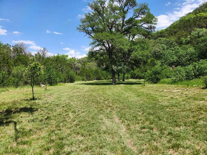 Nestled just an hour from San Antonio, the property features a mix of rugged, hilly terrain and the largest stretch of manicured flatland in the valley, ideal for building. A cleared potential home site is strategically placed to capture sweeping vistas. A seasonal wet-weather creek runs through the land, complete with a spring-fed waterfall during the rainy periods, adding to the property's charm all while being priced as dry land. The north-facing hill and the wet weather creek create a unique environment where increased foliage and larger, more mature trees can flourish.