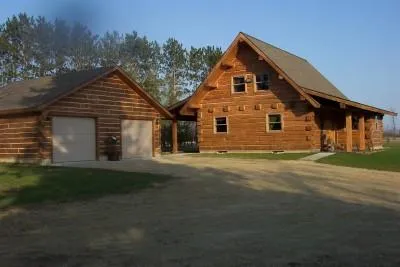 Beautiful Log Home W/3BR, 2BA.,Hickory Cabinets, Mstr. BR. W/ Balcony to Enjoy the Views of the 20 Acres. Main Flr. Laundry, Main Flr. BR, Every Room is Tastefully Decorated. 2 Car Det. Log Garage. W/Cement. Good Mix of Woods & Open. Additional acrege available.