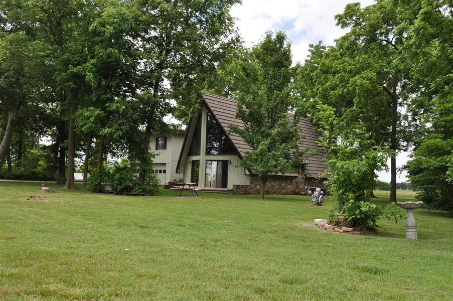If you want to live in the country, yet be close to town, this beautiful 20 acres would be ideal. Home is a unique A-Frame home that has a completely maintenance free exterior with metal shake roof that has a 50 year guarantee from date of installation. Spacious living room has Arkansas stone fireplace with insert. Kitchen has lots of cabinets and comes with all appliances. Large master suite with open master bath has vaulted ceiling. Central vacuum. Storm shelter. Large family room has bar, 1/2 bath, wood stove and space heater. Large 24x40 shop that is insulated and has wood burning stove. Roof over family room & garage is flat. Two A/C units: one for upstairs new in 6/2012; one for downstairs new in