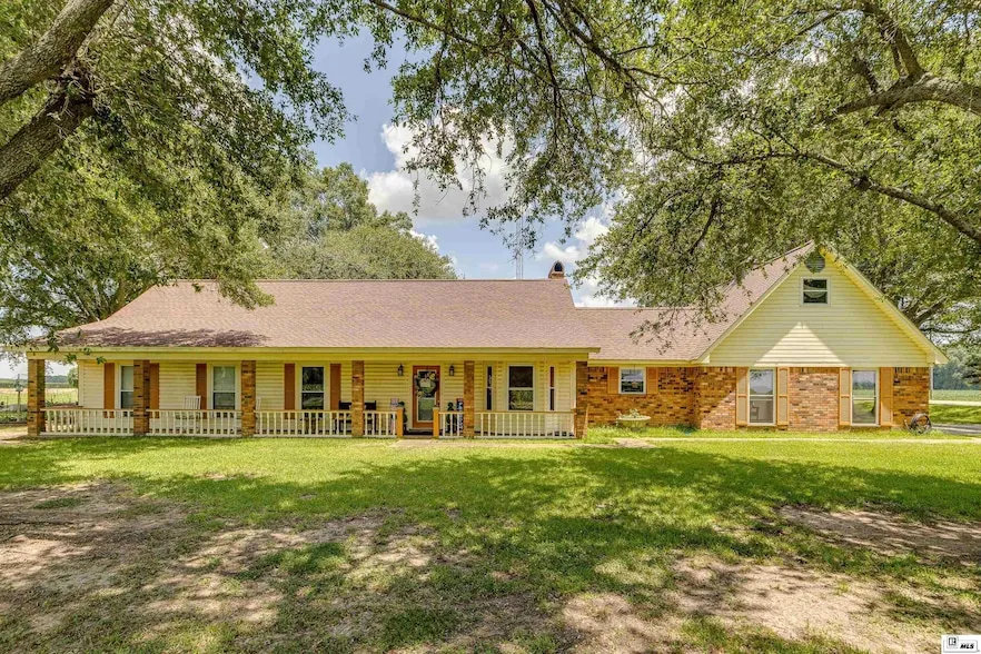 Welcome to your private retreat in the heart of Franklin Parish! Nestled on 20 acres, this spacious home offers the perfect blend of comfort, functionality, and charm. Step inside to a welcoming foyer that opens to a formal dining area, complete with beautiful bay windows that fill the space with natural light. Just beyond, the kitchen offers generous cabinet and counter space ideal for cooking and entertaining. The inviting living room features a large window, a cozy brick fireplace, and direct access to the covered patio, perfect for enjoying peaceful views of the property. Down the hall, you ll find a spacious laundry room with built-in cabinetry and a sink for added convenience. Two large guest bedrooms and a full bath offer plenty of space for family or visitors. The primary suite is a true retreat with multiple windows bringing in natural light, and an en suite bathroom featuring a double vanity and a large tiled sink area. Above the garage, there s a versatile bonus room with its own private entrance currently used as a craft room, but easily adaptable for a home office, studio, or guest suite. Additional highlights include a two-car carport accessible off the kitchen, a covered front porch, a shop with a roll-up door offering ample storage and workspace, and a large barn. Whether you're looking for room to roam, space to create, or simply a peaceful place to call home this property delivers it all.