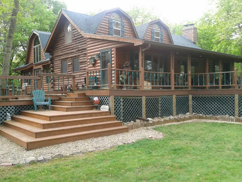 Rustic and charming log home nestled on 20+ acres. This home features a lovely porch that surrounds, cozy fireplaces, loft, sunroom and finished basement. Property includes an oversized 3 car garage w/2nd story shop, child's playhouse, 40x60 metal outbuilding, 30x30 livestock building and beautiful, stocked pond. Too many special features to mention! Up to 175 ac available.