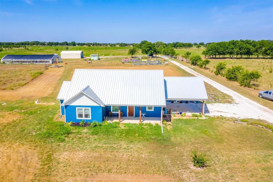 Calling all homesteaders! Your dream of self-sufficient living awaits on this expansive 20-acre property, brimming with potential for your off-grid or sustainable lifestyle. Picture yourself tending to chemical-free pastures, ideal for raising livestock cows, goats, or sheep while keeping the current ag exemption humming with beekeeping and harvesting your own raw honey! Grow your own food with established raised bed gardens or plow your own rows for your crops, fruit trees including peach, pear, and fig, and a high tunnel to stretch your growing season year-round. A ready-to-go chicken coop seals the deal for fresh eggs daily. This isn t just land it s a homestead haven. The home blends rugged practicality with country charm: stained concrete floors for no-fuss cleanup after a day of work, and a kitchen built for a homesteader s heart tons of cabinets, a large quartz-topped island, stainless steel appliances, a gas range, and even a pot filler for canning or cooking from scratch. Modern upgrades like a whole-home water filtration system, tankless water heater, and instant hot water tap make daily chores a breeze. Outside, multiple sheds and an open-front barn stand ready for your tools, equipment, or small livestock. A doggie door leading to the utility room keeps your farm dogs happy and mud contained. This is the ultimate setup to live independently, grow your own food, and embrace the quintessential homesteading life yet you re just 8 minutes from Buc-ee s for those rare off-farm supply runs. Start your legacy here!