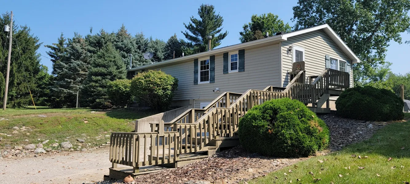 20 acres and an immaculate 1,104sf, 2 bedroom, 2 bath home with partial basement ready to be finished! Come on home and enjoy privacy on your back deck listening and watching nature. This is a beautiful piece of property surrounded by farm land. The wildlife is abundant! The home boasts vaulted ceiling's, a gas fireplace, large living room, main floor laundry, owner full bathroom and 672' of additional space in the walk-out basement ready to be finished. The home has newer flooring, paint and fridge. All appliances including the washer/dryer stay. New furnace in 2014 and the central a/c is keeping it cool! Septic was pumped in 2018. This is a beautiful All American Modular home that is very comfortable and is ready to move right into. Call today for more detail's!