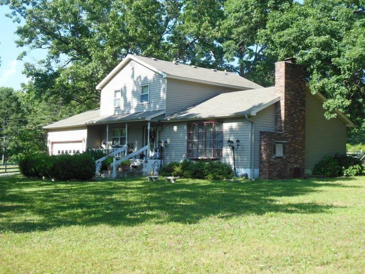A lovely, shaded, private drive winds through wooded pasture to this appealing 4 bedroom 1 story country home on 20 very pretty acres. Roomy kitchen with plenty of oak cabinets and a nice breakfast bar. Separate dining room. Spacious living room with bay window and wood-burning brick fireplace. 15x16 family room. 3 bedrooms and a bath upstairs. 1 bedroom and bath on the main floor. Vinyl siding. Attached 2 car garage. Inviting 12x32 covered deck in back. Several outbuildings including 3 good storage/utility sheds plus a 16x24 shop with 12x24 lean-tos on each side. Perimeter and some cross fencing. 2 ponds. Close to town and on a paved side road.