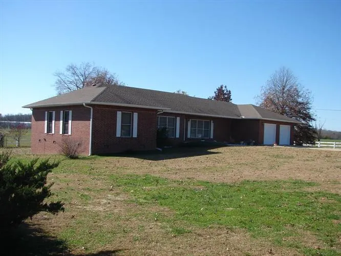 20 Acres - Beautiful brick ranch-style home in "like-new" condition - 3 bedroom, 2 bath - Sunroom - Fireplace. Ready to move into! Prime bottom land with more or less land available - Gorgeous white vinyl fencing. 12x24 storage building - 30x60 barn with 16 ft. shed - 36x48 barn with loft. Potential to be a real show place. Paved road - Just minutes from town.