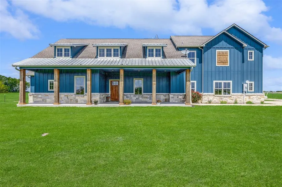 This distinguished, MOVE-IN READY, Craftsman-style residence is set on 20 acres of AG-exempt land with no restrictions, offering a blend of modern luxury and rustic elegance. The interior showcases new flooring and a gourmet kitchen equipped with a butcher block island and custom backsplash. Reclaimed wood accents infuse warmth into the living, dining, and foyer areas. The master suite, designed for relaxation, features a spa-like atmosphere and a custom storm closet for enhanced security. The property includes two ponds, a seasonal creek, and picturesque views, ideal for enjoying tranquility and nature. Additionally, a 1,500 sq ft concrete slab is prepared for the construction of a two-bedroom home, making it perfect for multigenerational living. The estate features three covered porches, livestock fencing, and shed. Located just minutes from Greenville and Rockwall.