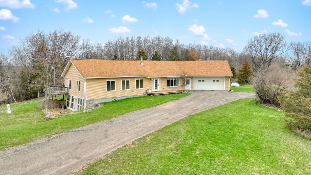 Sprawling ranch on 20 acres, 3 wooded and 17 rolling hills and field of wild flowers with trails. Enjoy total privacy, well fed bird watching and abundant wild life. Close to Onsted State Recreation area. Handicapped accessible home with open living space and lots of storage, 46 hallway. Kitchen features custom maple cabinets, solid surface counters and mobile center island. Living room has a wood burner, bay window and vaulted ceilings. Dining area has slider to wrap around deck and fenced area for pets. Master bedroom and bath off large laundry room with lots of storage. Over sized 2.5 car garage with cabinets and work bench. Walk out basement with high ceilings, large family room with a wood burner lots of glass and slider to brick patio. Workshop and mechanical room full of shelves