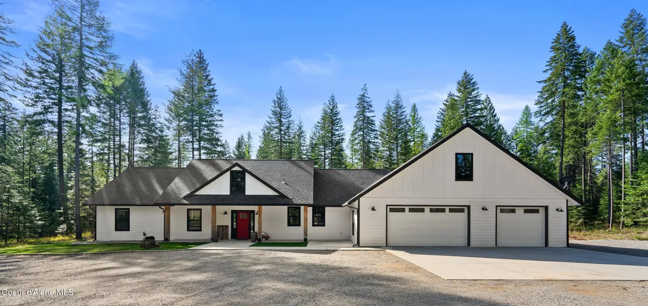 Welcome to your North Idaho dream home! Charming farmhouse style home situated on 20 private treed acres! Open floor plan designed for comfort, style and entertaining. Spacious dream kitchen features stainless steel appliances, quartz countertops, subway tile, walk in pantry with ample cabinet and storage space. Additionally, the living room features shiplap ceiling & recessed lighting throughout. The primary bedroom and bathroom boast a serene ambiance with a large soaker tub and walk-in tile shower, double sinks and hot water on demand. Exterior features offer landscaping, sprinkler system, large covered patio with built in firepit & hot tub ideal for entertaining and enjoying the views. RV parking with power and water hookup, storage shed and plenty of room for your dream shop! Conveniently locate close to Silverwood and Twin Lakes Golf course.