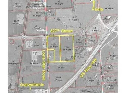 General Information: This 20 acres is part of a potential total of 40 acres. It will require a lot split from the City of Osawatomie. If the entire 40 acres is purchases the price is $440,000. This location is just within 1/4 mile of a 4 lane highway. It has all utilities and is in a proposed sewer development area. It is in the city of Osawatomie growth zone.