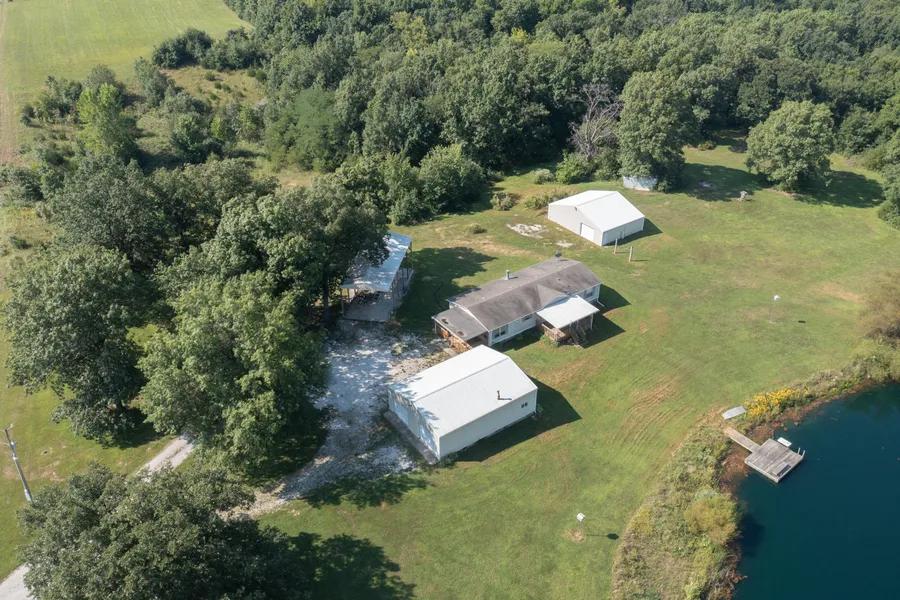 This 3 bedroom, 2 bath 1680 sq ft home is situated on 20 rural acres m/l of both wooded and open area. Located just a short distance from this homesite is the property's large stocked pond with dock. Adjacent to the residence are a 30x40 garage with 3 door bays and a 30x40 shop with 1 door bay. Both buildings have concrete floors, electric and insulation. Covered Pavillion also adds an excellent outdoor patio area or place to park your vehicles or equipment. Property has excellent hunting for a small home tract and has 8x8 box blind situated in the mature oak timber.