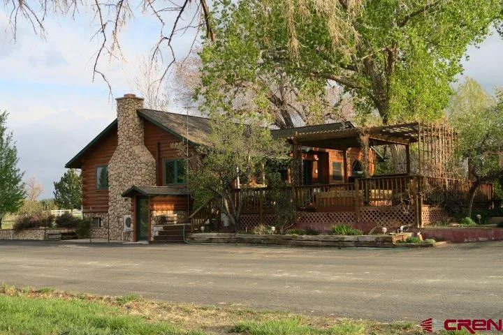 STUNNING but CASUAL, ONE OF A KIND RURAL ELEGANCE, 2750 sq ft one story LOG home 3 bedroom, two bath with a walk out lower level. Incredible out buildings, 1208 sf heated Stucco shop with large drive through 9' x 12' doors and concrete floor for RV storage, 920 sf Stucco garage (concrete floor), cutest wood frame barn w corrugated steel siding & dirt floor, hay loft. The 20 acres is fenced, 19 shares of MVI, 3 side rolls, a pond, beautiful views of the Mesa's, La Platas , night lights of the Valley. Interior includes hardwood, tile & hardwood flooring, Hot water boiler heating system, mini split A/C , Pella Triple pane windows, ceiling fans and recess lighting. Eat in Kitchen has an Island, two granite bars, dining area, a long counter top along one wall with overhead cabinets. Living room is large with a fire place. Main lever bath has double sinks , separate shower and a garden tub. As...