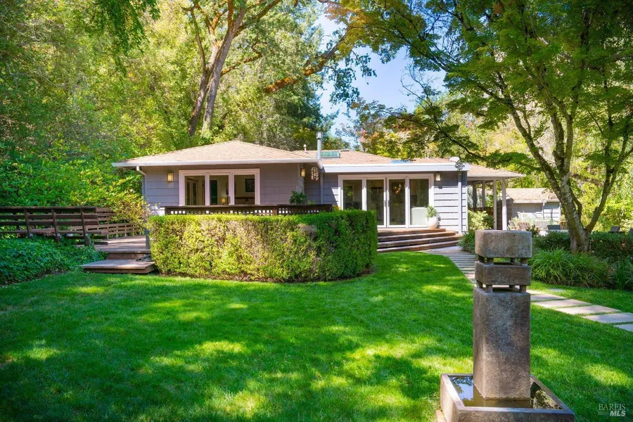 Tucked beside a peaceful, year-round creek, the home is perfect for luxurious full-time living or indulgent weekend getaways. This extraordinary 20-acre estate is just a short 8-minute drive from the lively downtown St. Helena, and all its world-class restaurants, shopping, and entertainment. Designed to showcase Napa Valley's incredible nature, outdoor living spaces are as important as indoor living. The lush grounds include raised vegetable beds, olive grove, meandering hiking paths, bocce court, and many outdoor seating areas are just a few of the unique features on this property offering the perfect blend of tranquility and luxury. This serene sanctuary offers a beautifully remodeled, single-story main residence with 3-en suite bedrooms, and a beautifully appointed 1-bedroom, 1-bathroom guest cottage complete with kitchen, living, and dining space. Designed for relaxation and entertainment, the main home features a chef's kitchen that flows into an expansive dining area and a spacious outdoor patio, ideal for hosting friends and family. Wine lovers will appreciate the custom wine cellar and tasting room land ideally suited for a sizable collection. This harmoniously designed home is ready for its lucky new owners to enjoy for years to come!