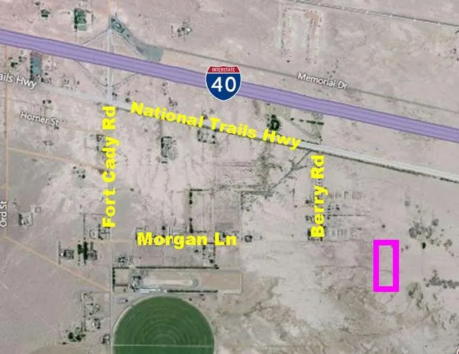 Driving Directions: From Barstow, take I-40 to Newberry Springs. Take exit 23. Turn right on Fort Cady Rd. Turn left on National Trails Hwy. Turn right on Berry Rd. The parcel is on the left, set back from the road behind the house at 30377 Berry Rd. The county zoning map shows that the parcel is on an extension of Morgan Ln. There is no physical road access to the parcel at this time. Boundaries in aerial map are only approximate. Take an aerial map with you.