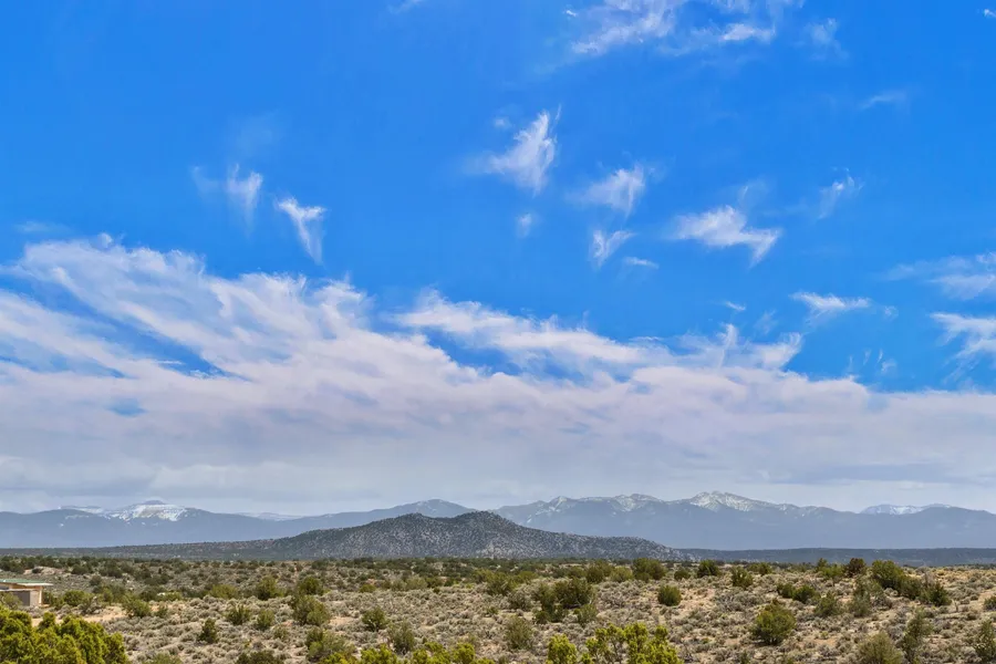 Five miles from the Ojo Caliente Hot Springs, here is a comfortable, passive solar home on 20 acres with privacy and 360 degree views in all directions combining contemporary lines with traditional northern New Mexico building materials. The studio/home has 1,200 interior sf with two 300 sf porches featuring Adobe exterior walls, interior and exterior adobe plaster, woodstove, polished Flagstone counter-tops, recycled glass wall tile, polished tan concrete floors and 24 gauge metal roofing. Also incorporated into the design is a "Green Building" rainwater catchment system with three - 1200 gallon cisterns. This beautiful home is located on the high desert plateaus of northern New Mexico at a 6,700 ft. elevation. A traditional adobe construction and passive solar design keeps the house cool in summer and warm in the winter. The use of traditional mud plaster helps blend the building into the surrounding high desert landscape. The building has one large studio space with a full bathroom, closet and mechanical room. The property has reasonable protective covenants and a deeded easement access to the surrounding Carson National Forest for hiking, camping and horseback riding.